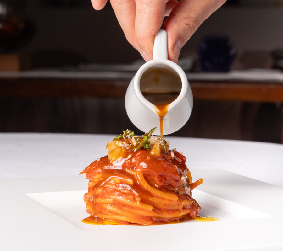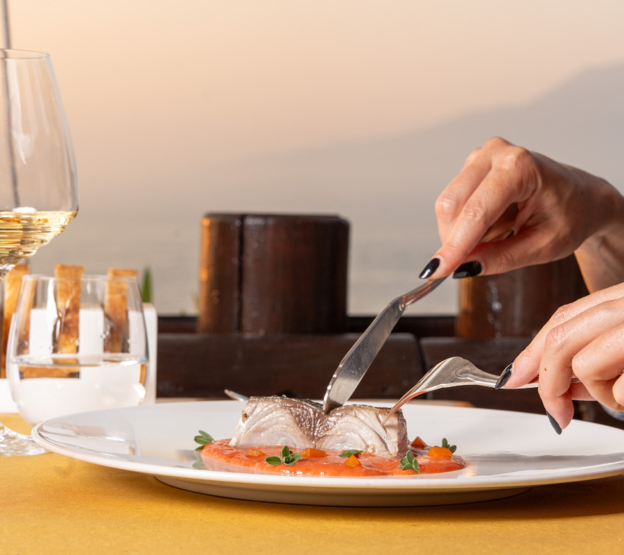 Un percorso gastronomico che unisce una visione mediterranea a un servizio di sala curato e misurato. È possibile scegliere tra proposte à la carte e percorsi degustazione pensati per accompagnare l’esperienza con coerenza e continuità.